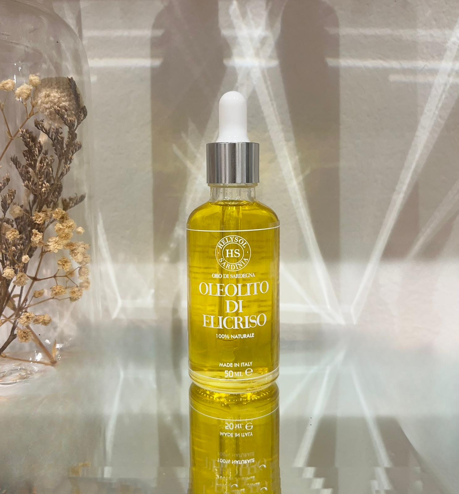 Oleolito di Elicriso, prodotto tramite la macerazione in olio di girasole dei fiori di Elicriso.